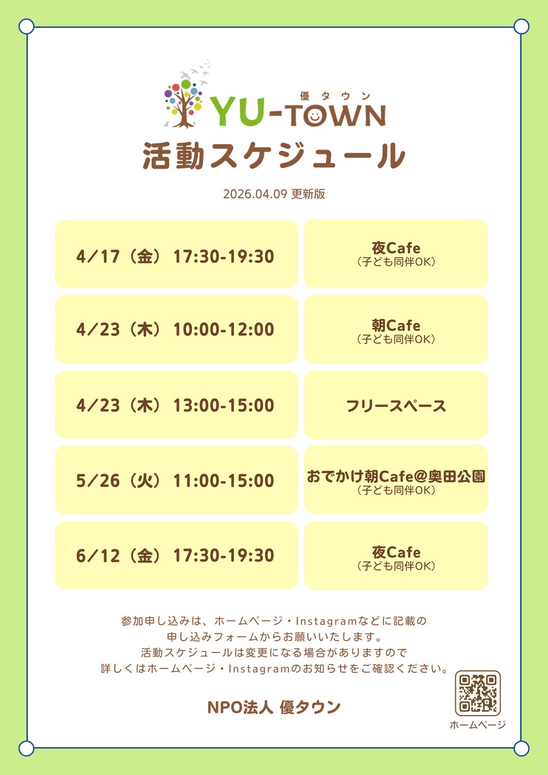 そんなどんな子どもにも優しい社会を『優タウン』と名づけ、ホームスクーリングタウンという新しい世界観の実現を目指しています。