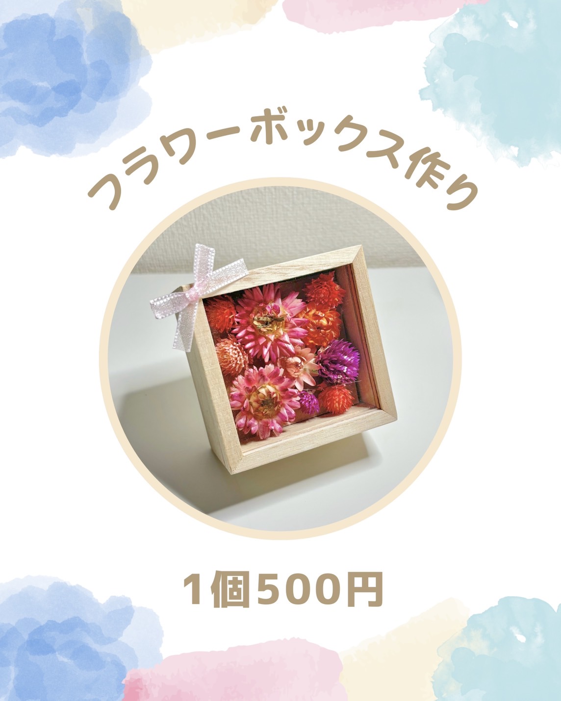 今回はご寄付頂いた素敵なドライフラワーを利用して”フラワーボックス作り”を開催します!